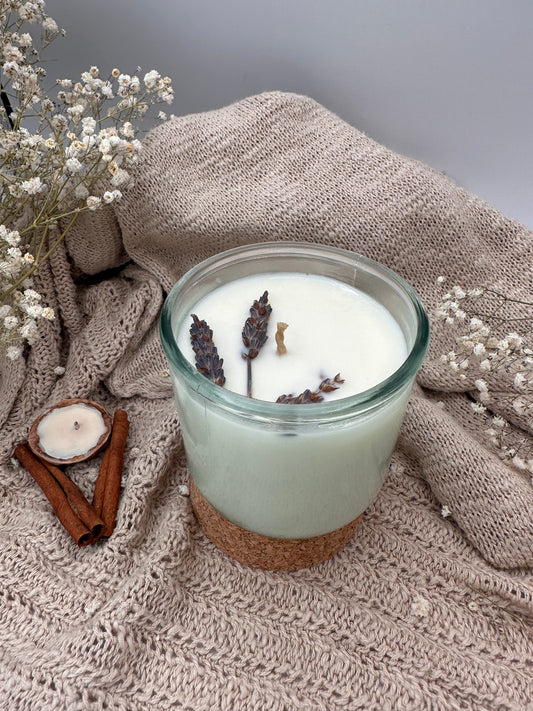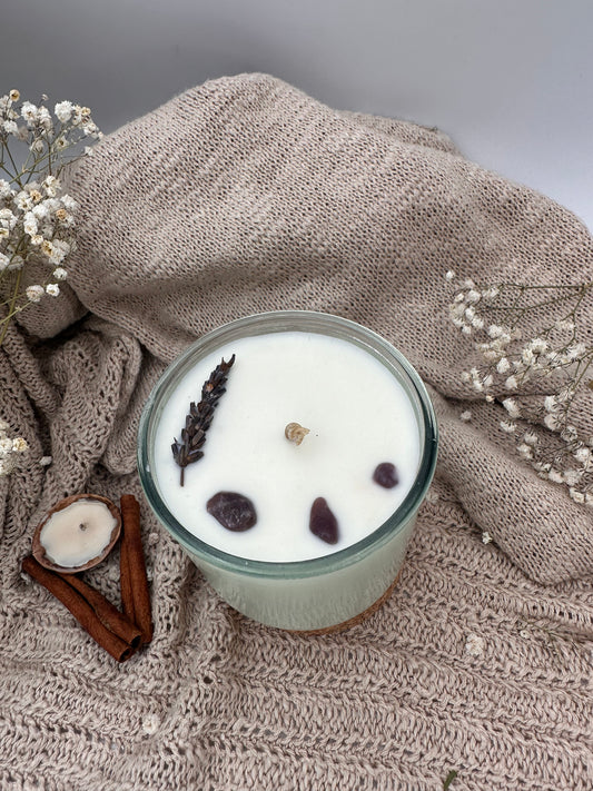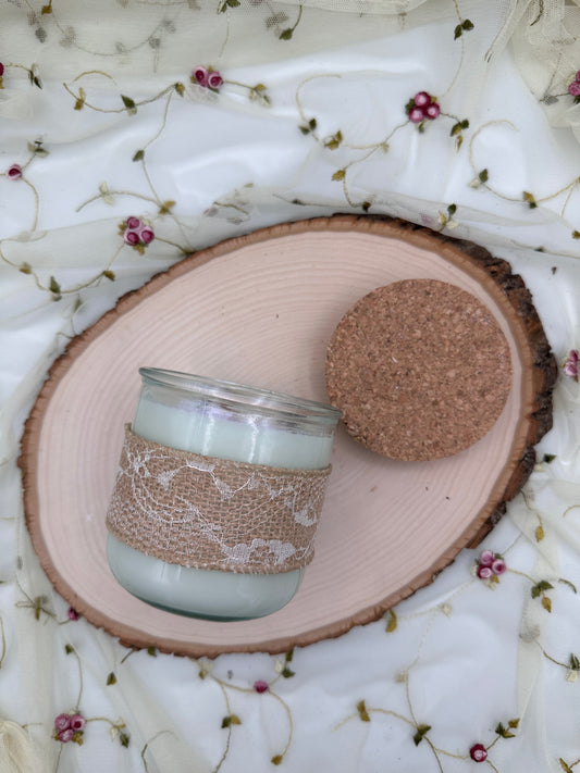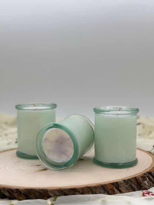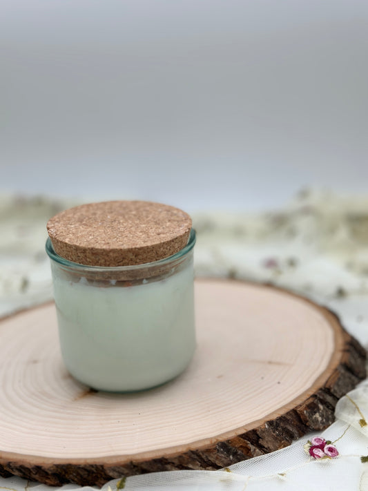 Artisan 100% soy wax candles in upcycled and recycled glass jars