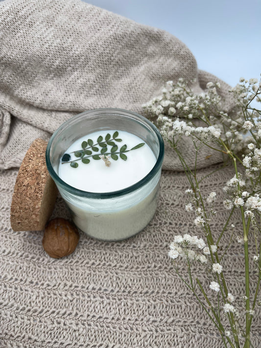 Holiday Mint with Pressed Leaf- essential oil soy candle